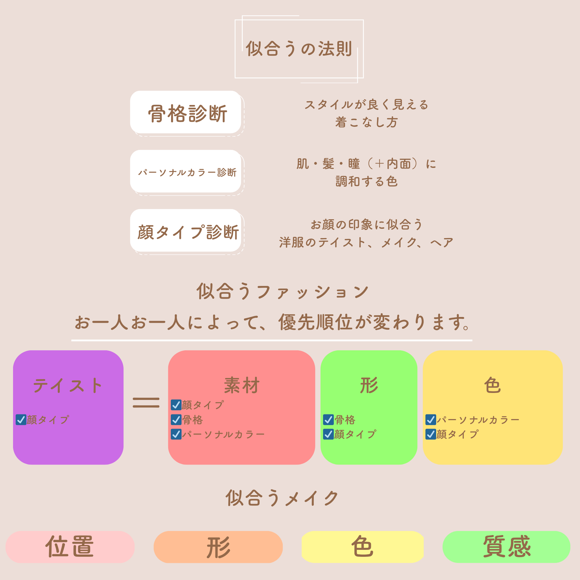 ※骨格診断・顔タイプ診断・パーソナルカラー診断を両方受けられたお客様のみ