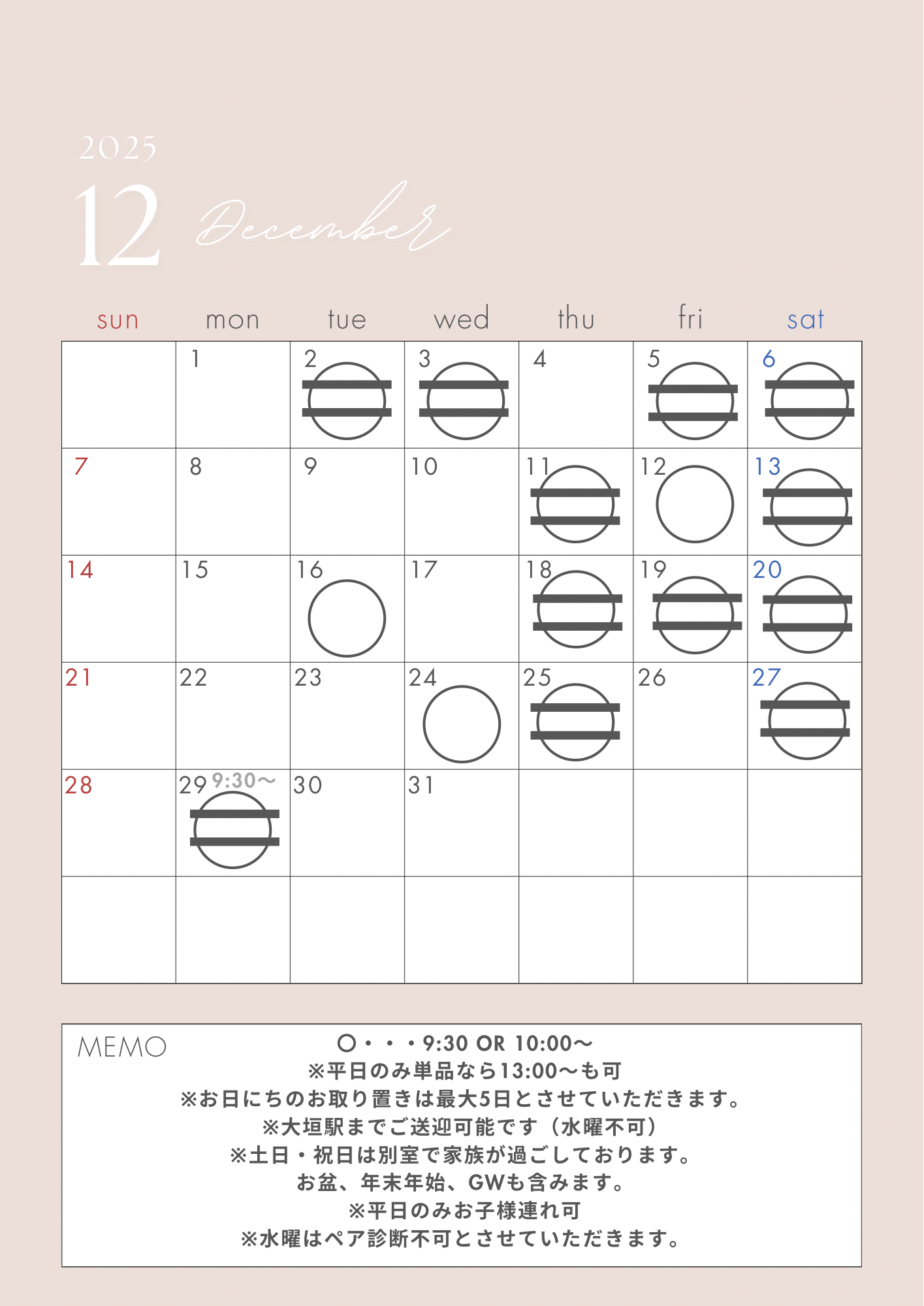 1日基本的に1組様限定とさせていただいております。